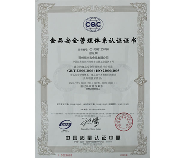食品安全管理體系認證證...